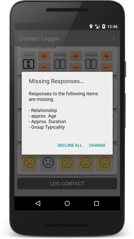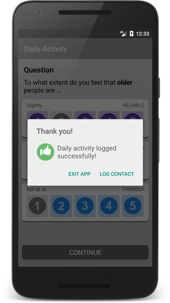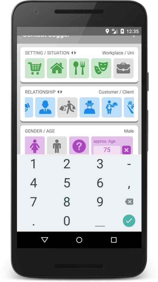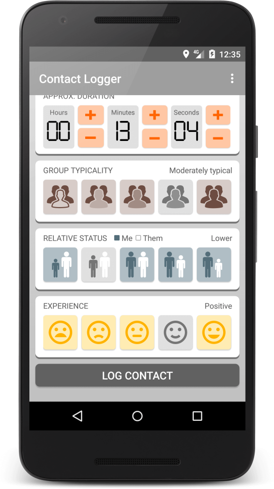 The Contact Logger was designed for research in-the-wild. It can be used to record contact in both public and private settings, enabling the measurement of contact when and where it happens (e.g., in near-time). Near-time means asking participants to log the contact they have just had, directly after it has occurred and while still in the location of the contact event. It typically takes approx. 17 seconds to log a contact event.